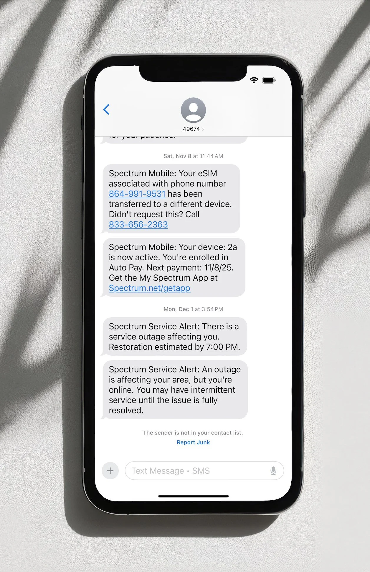 I am a Spectrum customer, and I received an outage notification during this process. It made me think of a few “what ifs” that could benefit customers when they receive outage notifications. In addition, I added additional messages that utilize potential RCS applications. There could be a variety of possibilities around personalization for the customer in terms of using their name and dynamically pulling relevant offers based on their existing services. In addition, I’ve seen good results from using personalization (the name of an employee) in communications as well. All of these examples below represent some quick explorations around different uses for RCS, including the possibility of utilizing a carousel experience to serve multiple relevant offers or services. This is, of course, just scratching the surface for what’s possible with a few quick iterations.