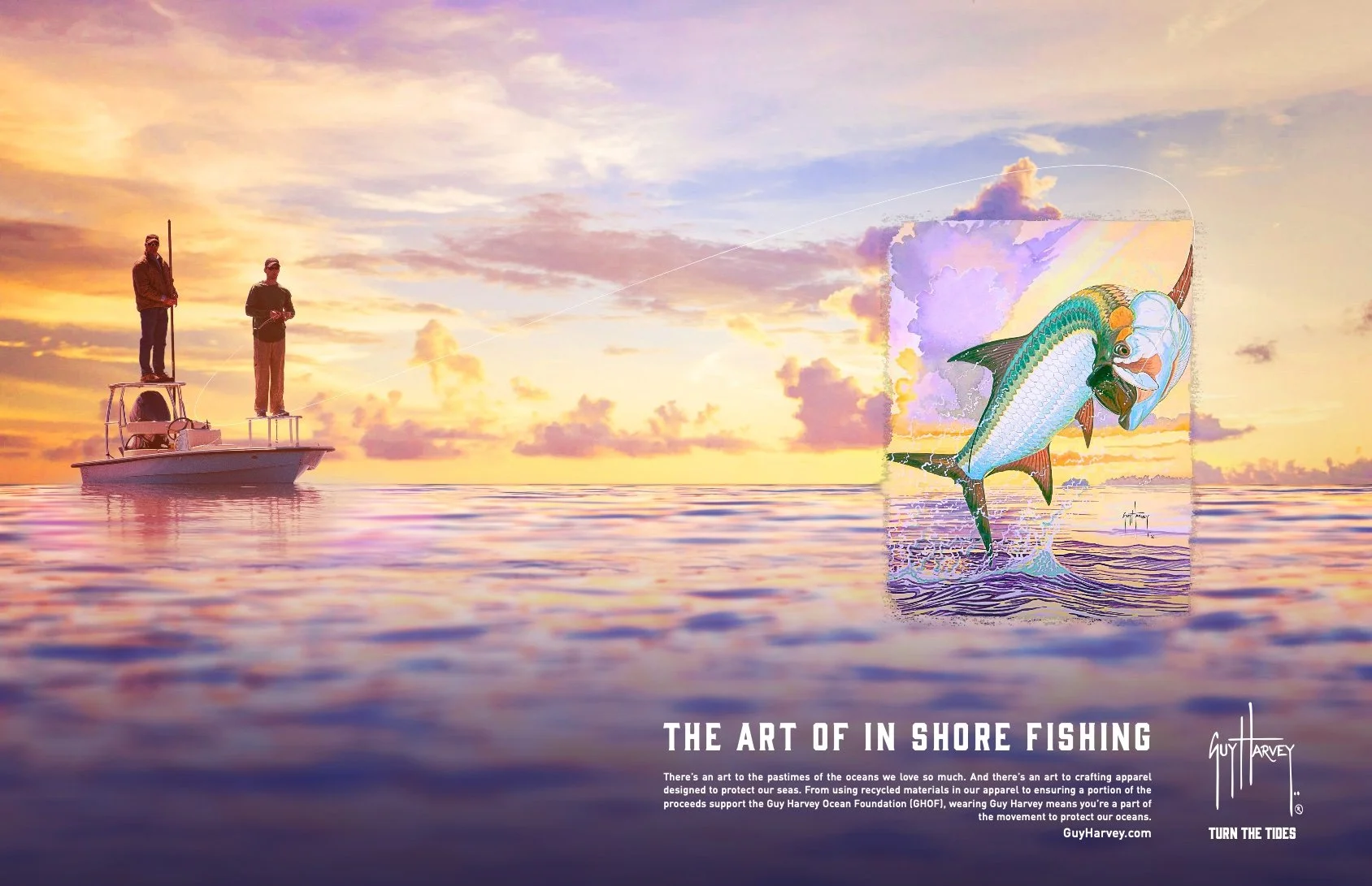 I created a new tagline and campaign that helped bring focus and attention to the ultimate goal of Guy Harvey’s apparel and artwork: protecting and preserving marine life. The “Turn The Tides” campaign brought attention to the previously hidden work of the Guy Harvey Ocean Foundation, and helped tell the story of their brand in a new way that resonated with their existing audience while also attracting a new one.