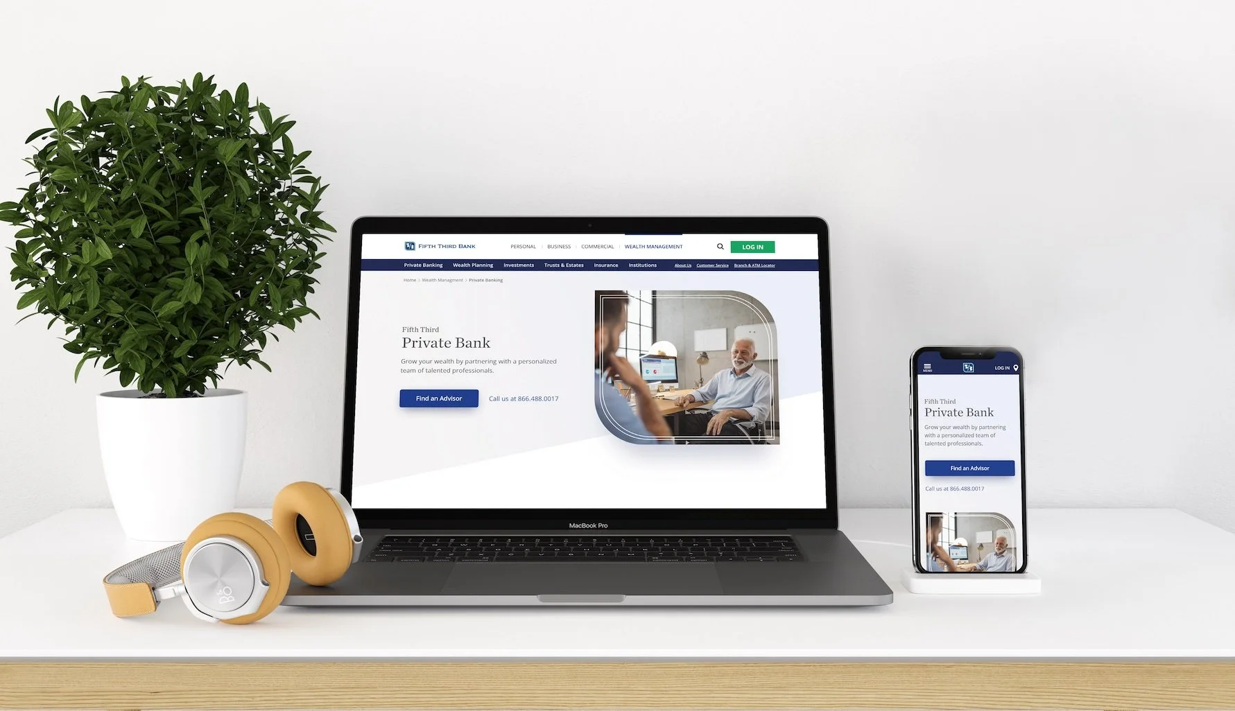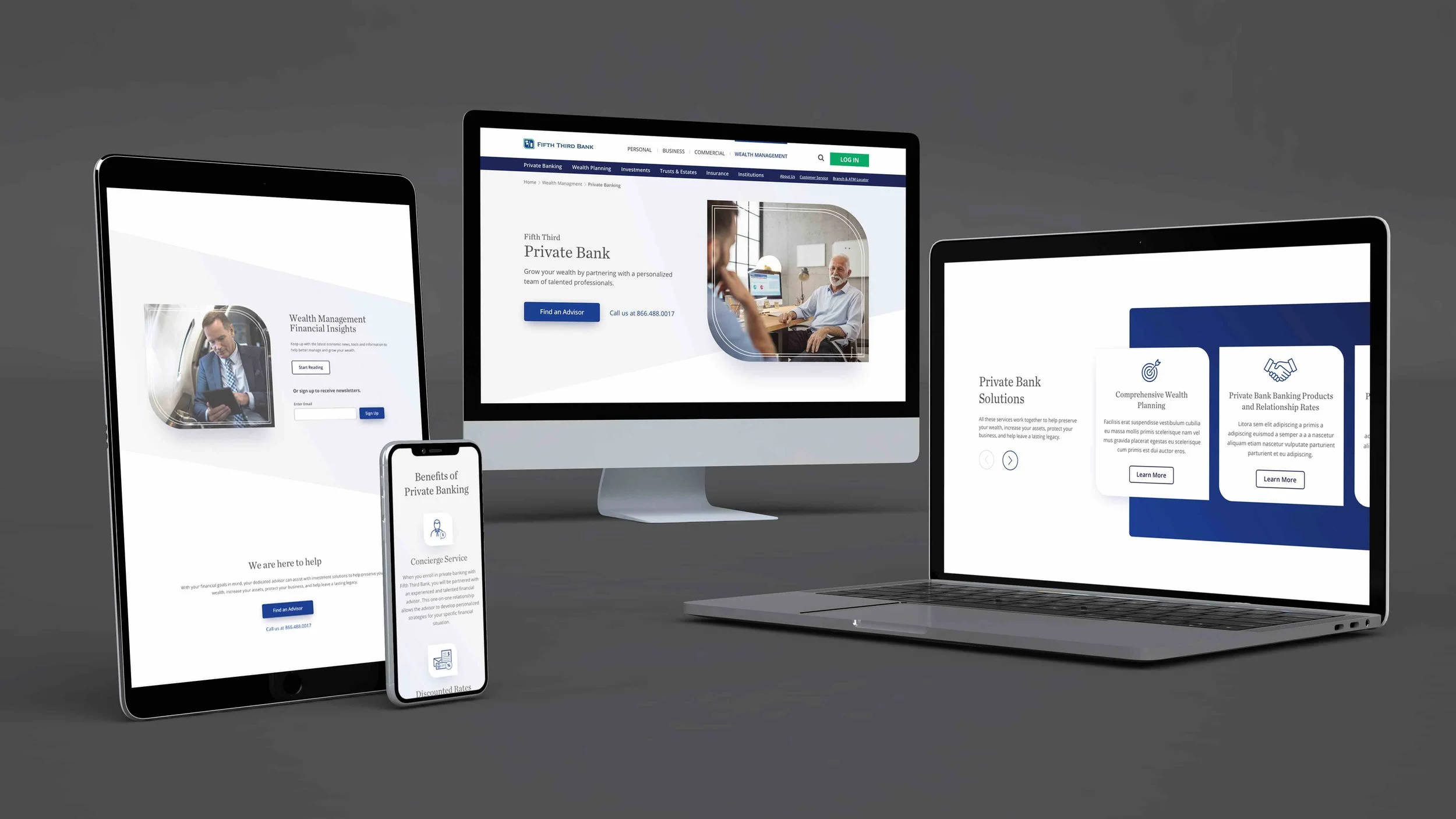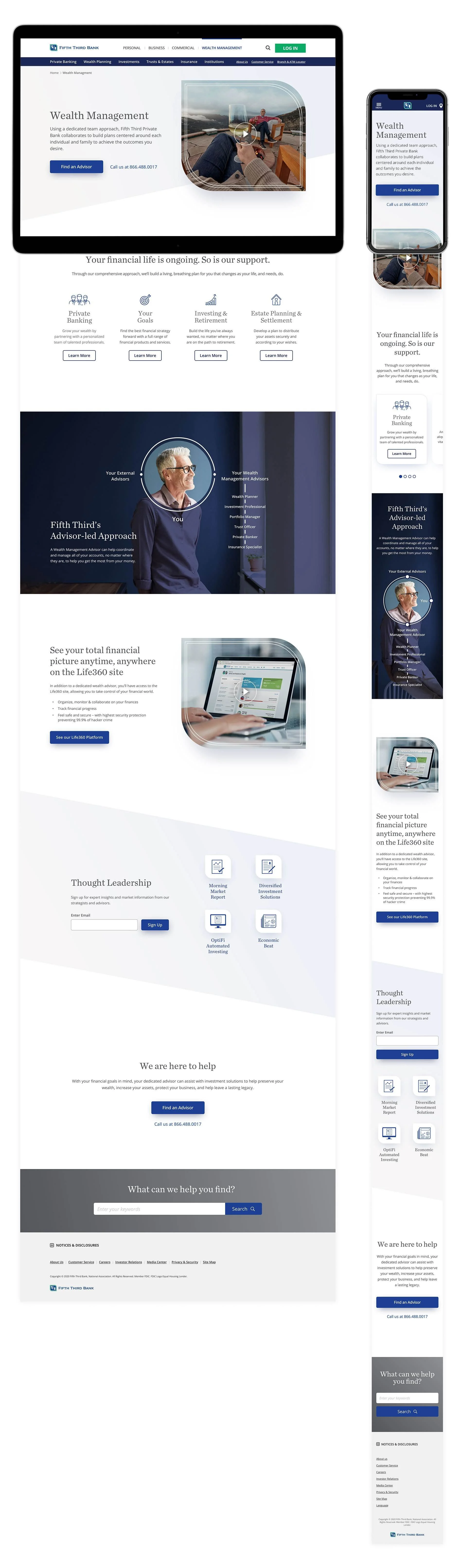 Fifth Third Bank’s Wealth management division was in need of a site overhaul. As CCO, I oversaw our interactive team and creative teams and led this project’s design, UI/UX, creative and copy implementation. Credits: Nick Ress.