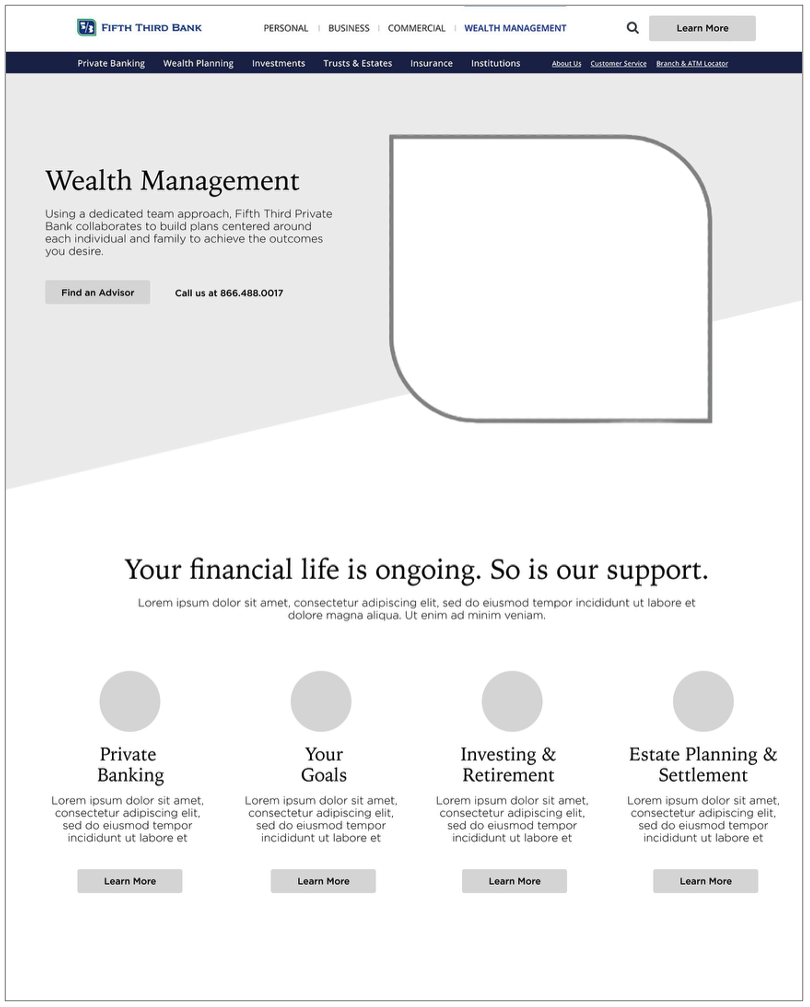 When my team and I started this project, Fifth Third had just implemented a new brand guide for their wealth management division. It was my responsibility to ensure we brought their new brand into the interactive space seamlessly and effectively while recommending any adjustments through the creation of our UI guide.